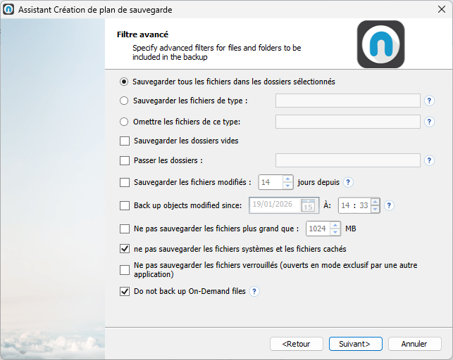 - Ignorer les fichiers volumineux comme les PST, les ISO, ..